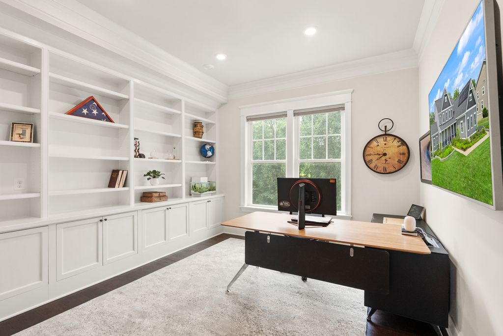 Welcome to luxury living in Willowsford at its absolute finest. Built in 2020, this spectacular east-facing Regents Park II model is equipped with so many high-end upgrades - cosmetic, structural, and technological - and truly offers every characteristic and amenity you are looking for in one of Loudoun County's finest neighborhoods. As you approach the property driving down a quiet, private street, you'll start to feel right at home in this incredibly beautiful part of The Greens. The home's powerful curb appeal stands out as it boasts an eye-catching exterior accompanied by a vibrant, healthy garden that is an accredited Audubon At Home Wildlife Sanctuary! Entering through large wooden doors with dual monochromatic windows, you'll step into the home's impressive foyer and immediately begin to notice the details that separate this home from the rest - beautiful crown moulding, extensive trim work, and carefully selected architectural details. The expansive main level boasts an incredible open layout and begins with a lovely dining space with a tray ceiling, wainscoting, and plenty of natural light. Now step into your stunning, magazine-worthy two-story great room adorned with coffered ceilings, a magnificent fireplace upgraded with stone, built-in shelves, and massive windows that welcome in so much natural light. This living space flows seamlessly into a stunning gourmet eat-in kitchen with upgraded cabinets, dual oversized islands, beautiful white quartz countertops, a farmhouse sink, two dishwashers, extra mini-fridge, and walk-in pantry! The refrigerator is also equipped with a water purification system/reverse osmosis system, and a line can be connected right to your coffee maker too! This level is also home to two full home-office spaces, both with lovely French doors and plenty of space. Or convert these to sitting rooms, or recreation spaces - so many options! If that was not enough, there is also a FULL GUEST SUITE on the main level. It comes complete with a large, well- lit bedroom, walk-in closet, and full bathroom with a double-vanity and upgraded shower. Perfect for the parents, in-laws, guests, or anyone else! Heading up either way on the grand double-sided staircase, you'll find an upper level with 4 bedrooms, each of which is equipped with its own full bathroom. The primary suite is an absolute dream as it boasts a gorgeous hand-painted Roman clay tray ceiling, sit-in space where you can enjoy the lovely fireplace, massive dual walk-in closets, and a one-of-a-kind primary bathroom. Designed with Alicia Thomasson Interiors, this bathroom is highlighted by a stunning chandelier against additional Roman clay, an oversized soaking tub, dual vanities with exquisite hardware, mirror, and light fixture choices, and a spacious shower with beautiful tile. The upper level also offers a fully equipped laundry room as well that is complete with fantastic cabinet space! Downstairs you'll enjoy an incredible walk-out basement that boasts so much open space and room for activities. The full bar offers a great space to relax as you decompress, play some ping pong or pool, or even head into the two-level movie theater to catch some entertainment. The basement also offers a 6th legal bedroom, and a significant amount of unfinished storage space. Now, the outdoor space is what dreams are made of! Custom designed and built by Rock Water Farm, the back is home to a spacious and high-end Trex deck, a gorgeous covered flagstone patio complete with a stone fireplace, natural boulder work, and was designed with a gunite pool in mind - just ask for rendering! All of this backs to a fully protected and untouched conservation area in Aldie, offering complete privacy! Additionally, the home comes equipped with paid-off high-performing solar panels that convey with a warranty, 16 zone irrigation system, outdoor lighting, speaker systems, and more. This home is a real dream come true in Willowsford - come see it today!